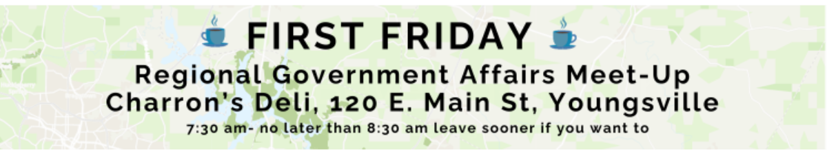 The First Friday meeting is an important and recurring morning gathering that takes place on the first Friday morning of each month. It serves as a platform for elected and appointed officials, stakeholder, and individuals invested in government affairs to maintain conversatiosn, come together for coffee, breakfast, and conversation, with the flexibility to leae whenever necessary. Can't make a First Friday? We will see you at the next one!